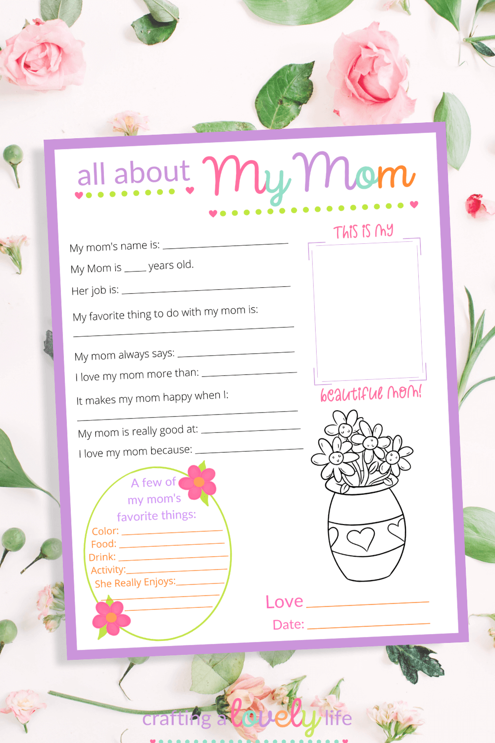 Whether it’s Mother’s Day, her birthday, or just because, this printable is a thoughtful gesture that will surely put a smile on your mom’s face. It’s a unique gift that shows how much you care in a personal and creative way.