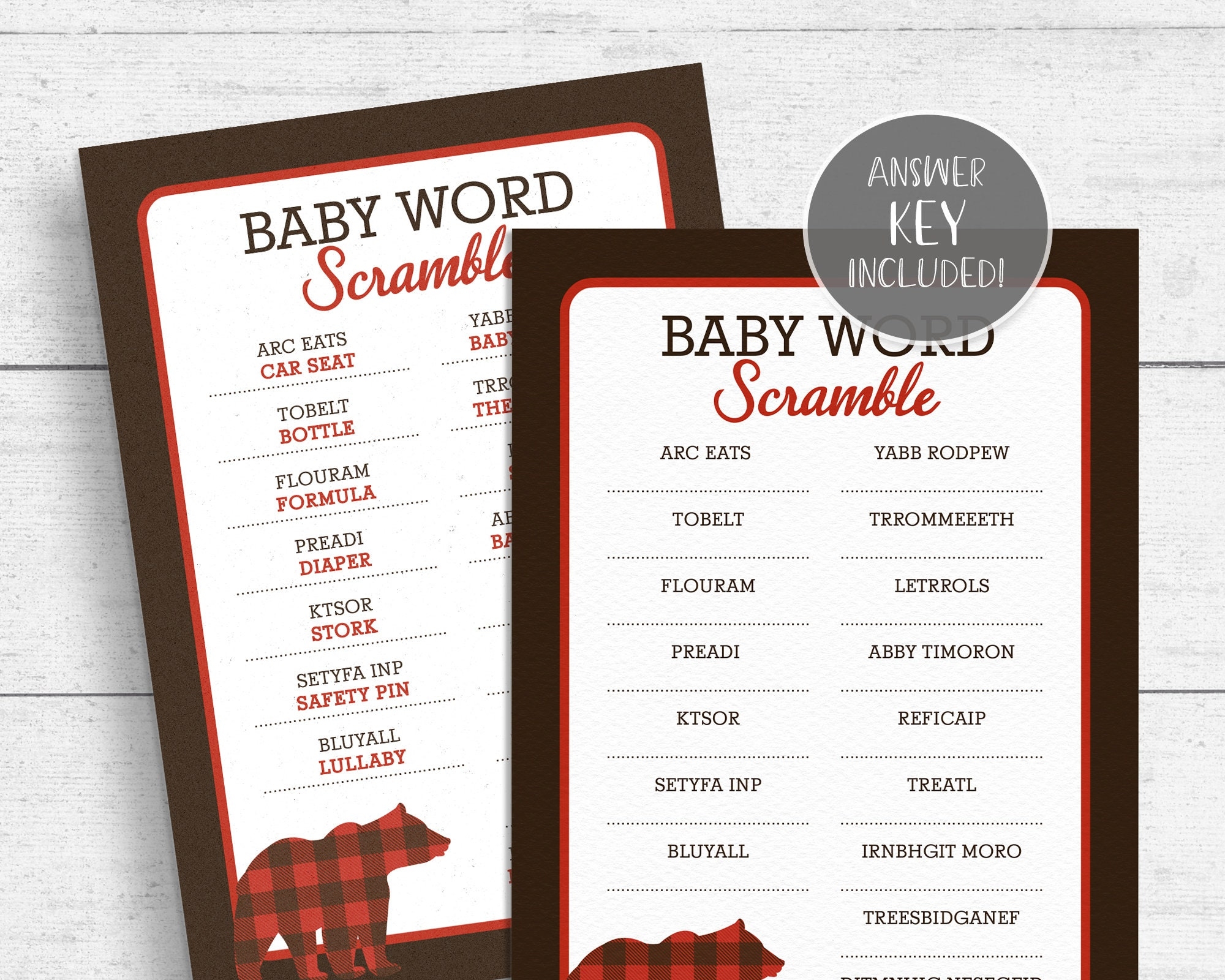 Lumberjack Baby Shower Word Scramble Game Printable Buffalo Plaid Bear DIY INSTANT DOWNLOAD LJ01 Etsy
