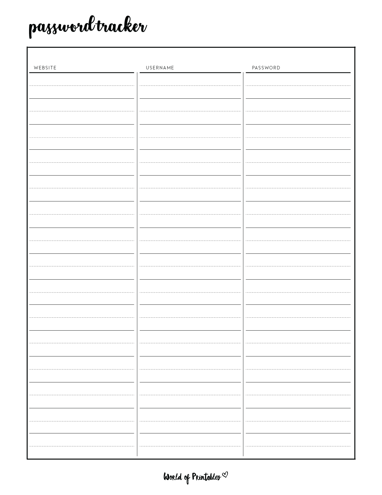 Password Logs Trackers 25 FREE Printables Printabulls