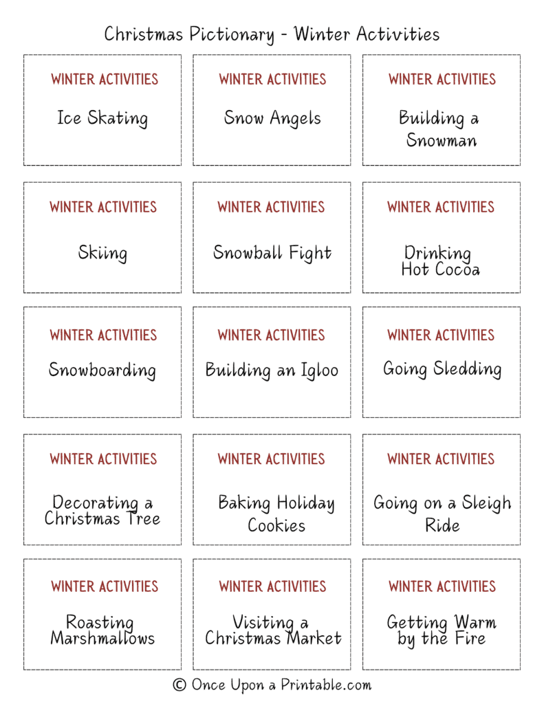 So gather your loved ones, grab some pencils and paper, and get ready to guess your way through a night of holiday fun. With our free printable Christmas Pictionary words, you can easily add a festive twist to your celebrations and create a memorable experience for everyone involved.