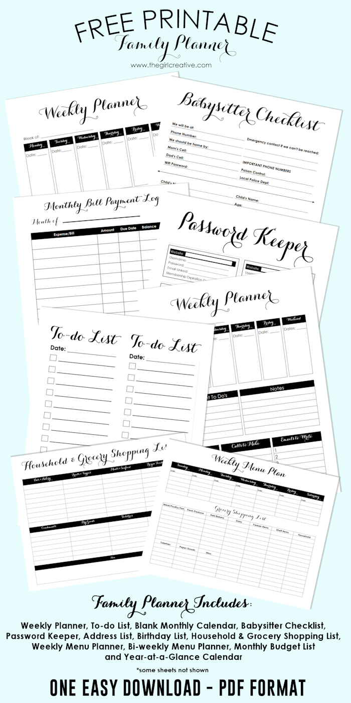Free Printable Family Planner The Girl Creative