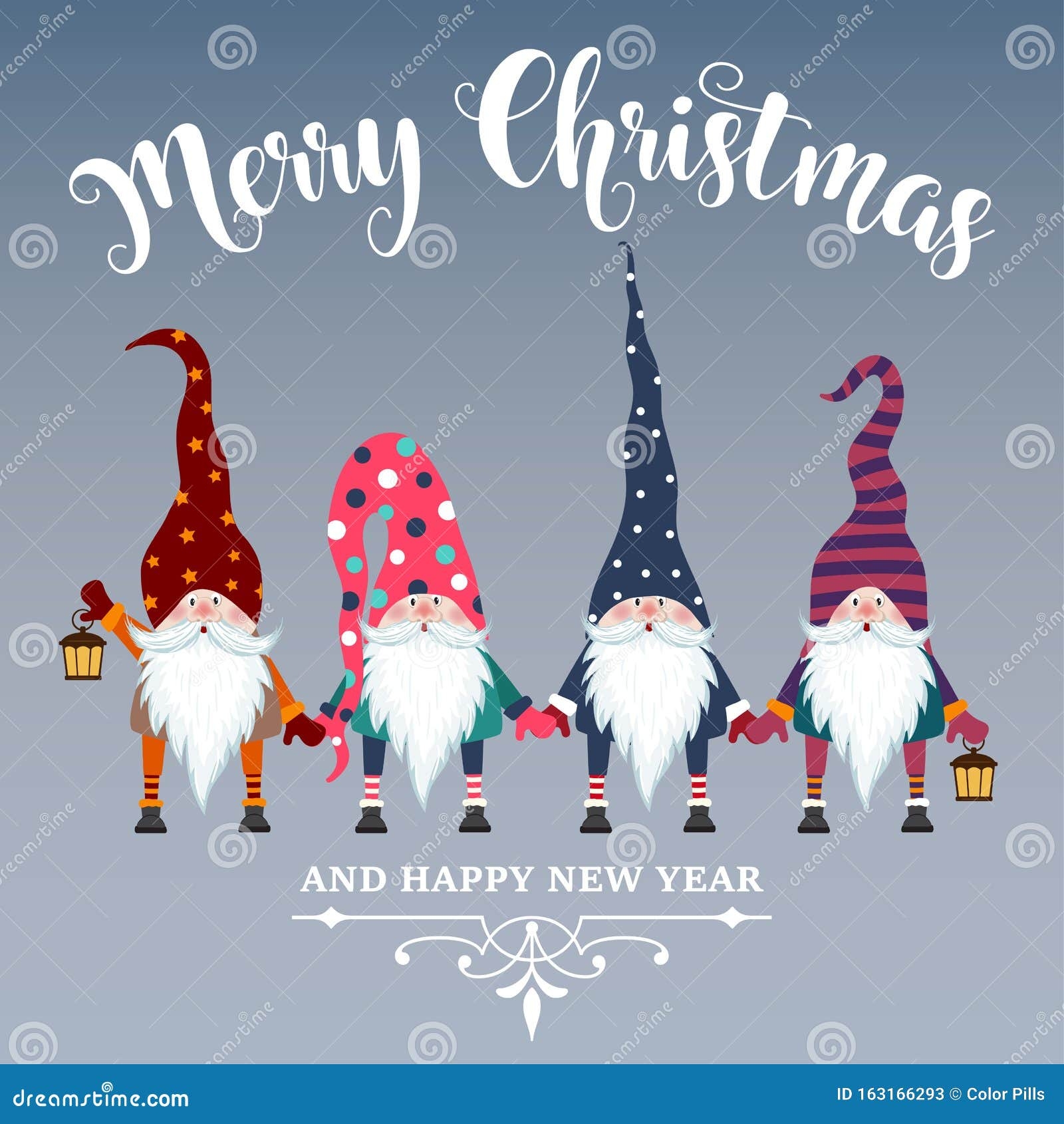 Beautiful Flat Design Christmas Card With Gnomes Christmas Poster Print Vector Stock Vector Illustration Of Celebrate Season 163166293