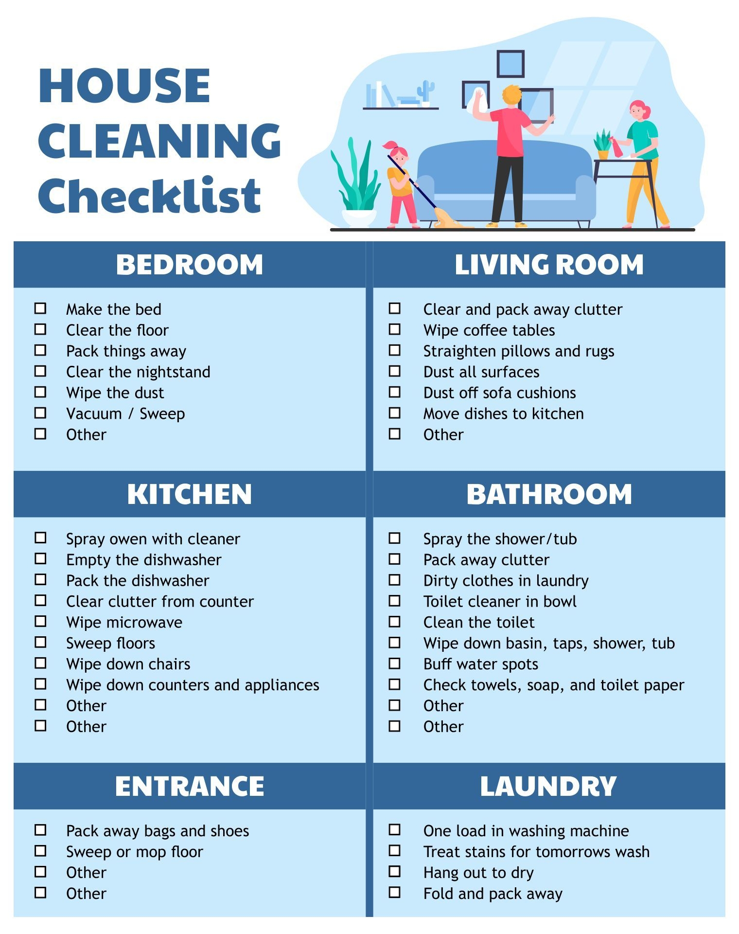 Free Printable House Cleaning Checklist For Maid