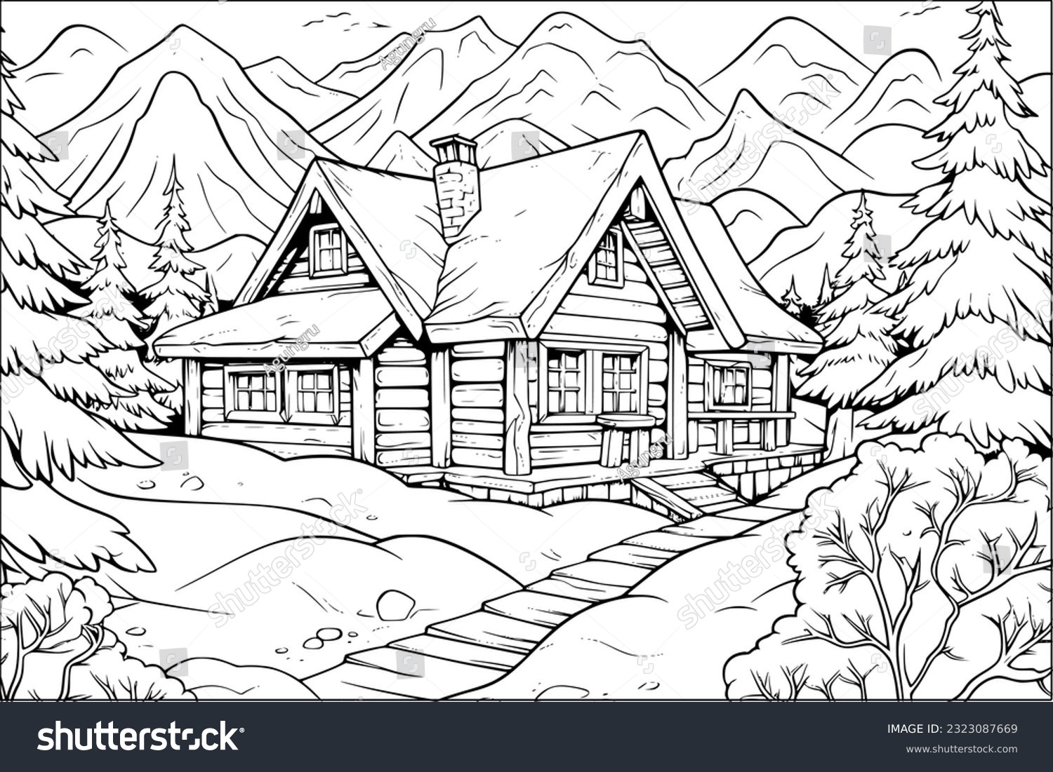 Coloring Page Adult Kids Wooden Cabin Stock Vector Royalty Free 2323087669 Shutterstock