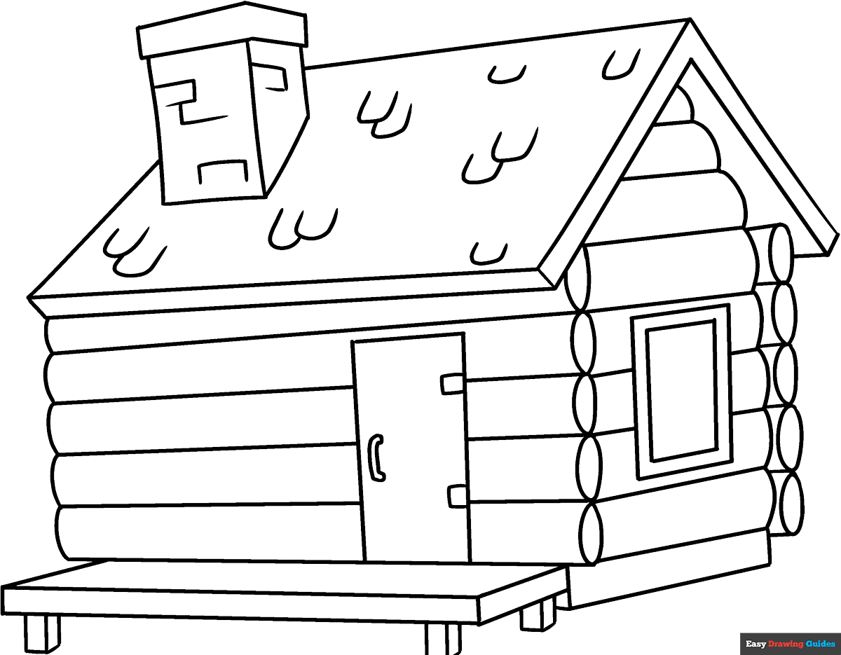 Log Cabin Coloring Page Easy Drawing Guides