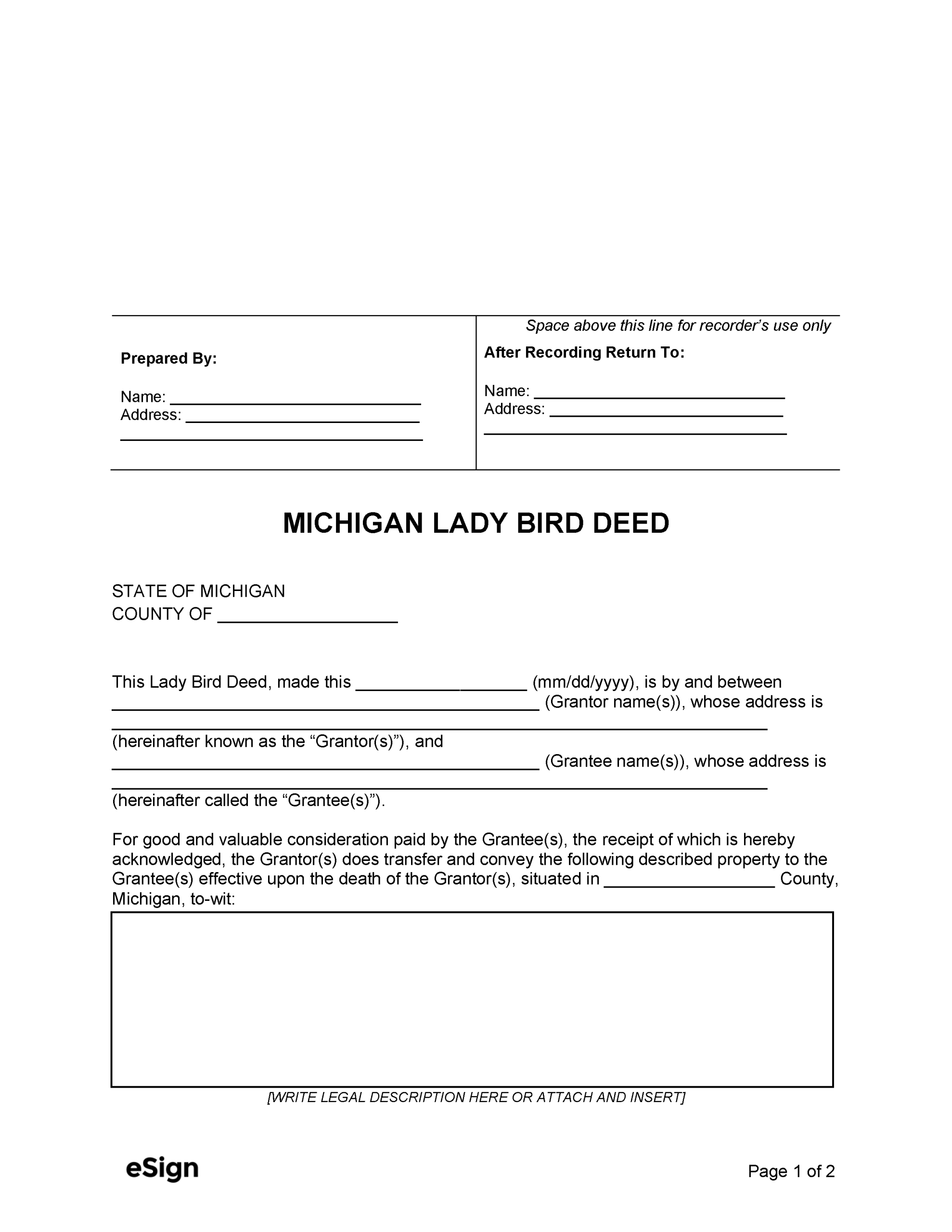 Free Michigan Lady Bird Deed Form PDF Word