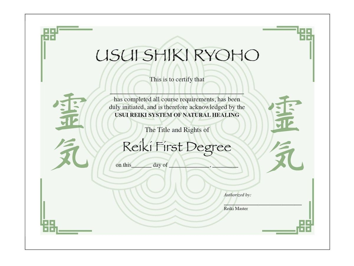Printable Usui Reiki I Certificate Template
