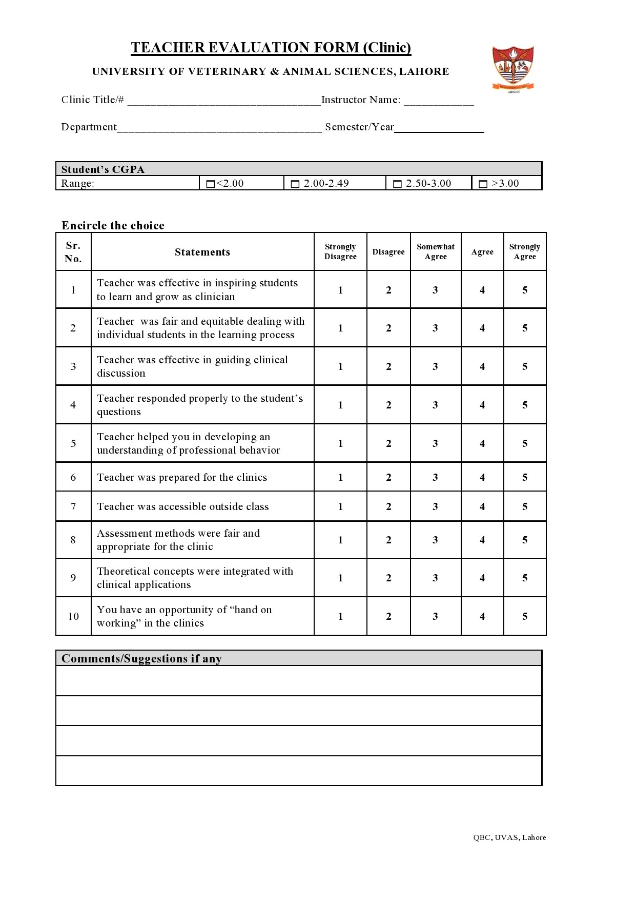 50 Printable Teacher Evaluation Forms Free TemplateLab