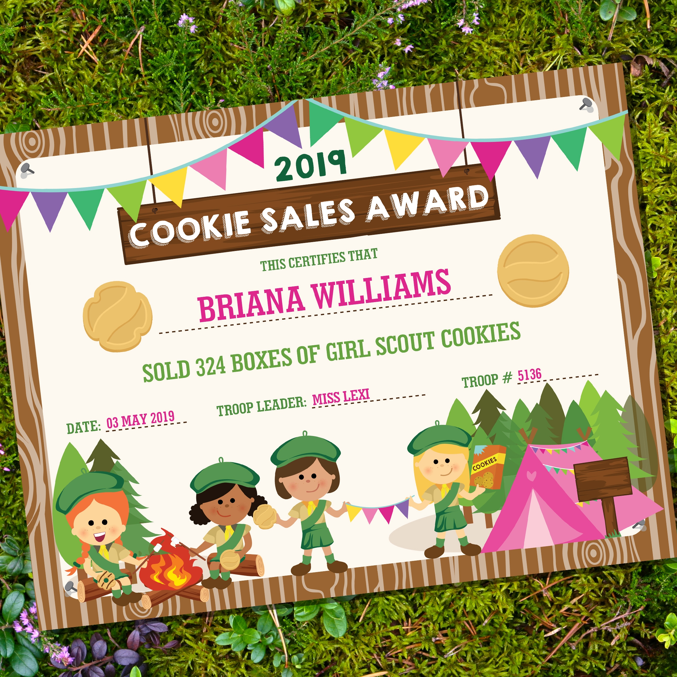 Editable Girl Scout Cookie Sales Congratulations Certificate Etsy