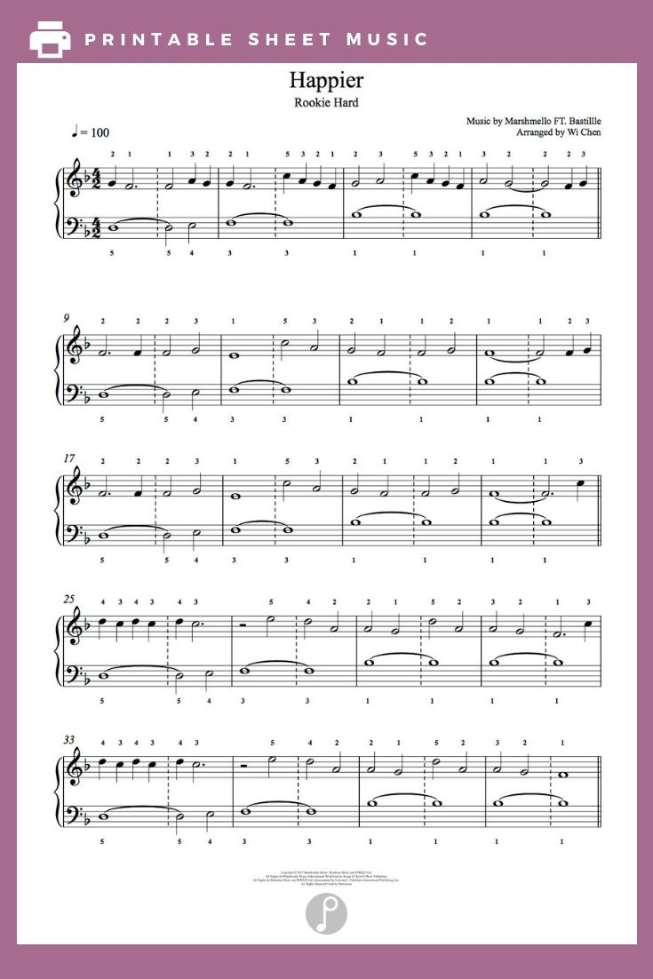 Whether you’re practicing for a performance or simply playing for your own enjoyment, having access to free printable sheet music can make your musical journey even more fulfilling. So why wait? Dive into our collection of Happier sheet music today and let the music take you to a happier place.