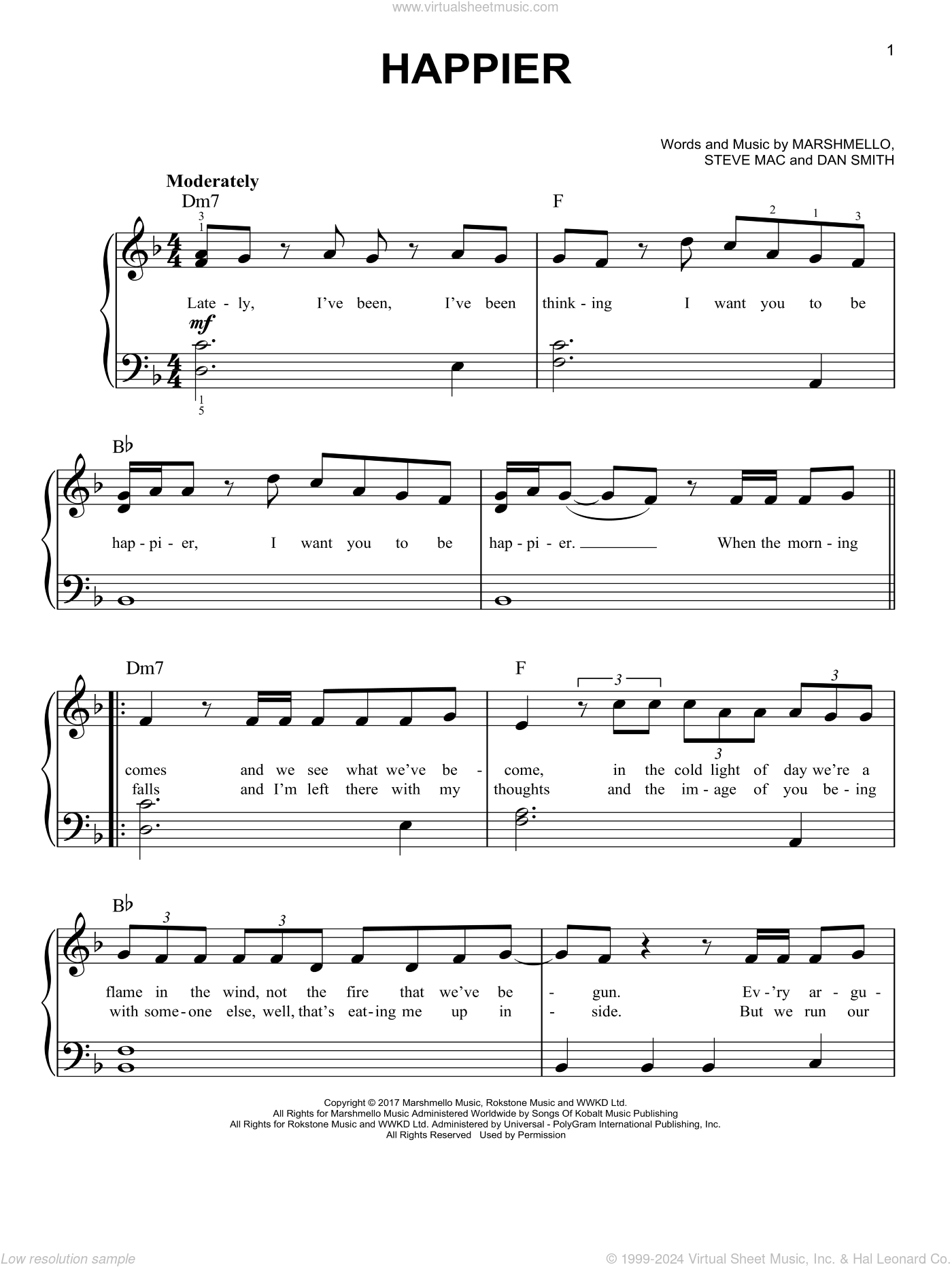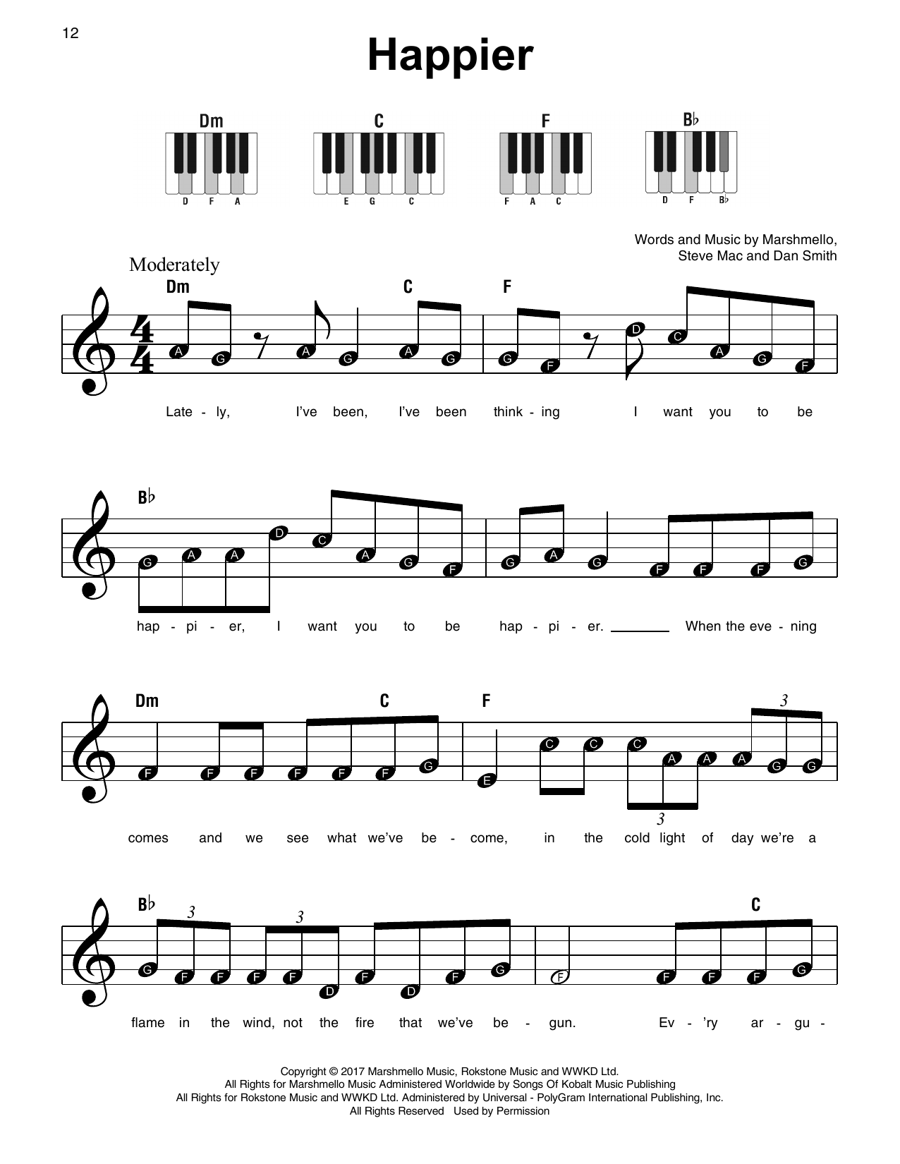 Marshmello Bastille Happier easy Sheet Music For Piano Solo