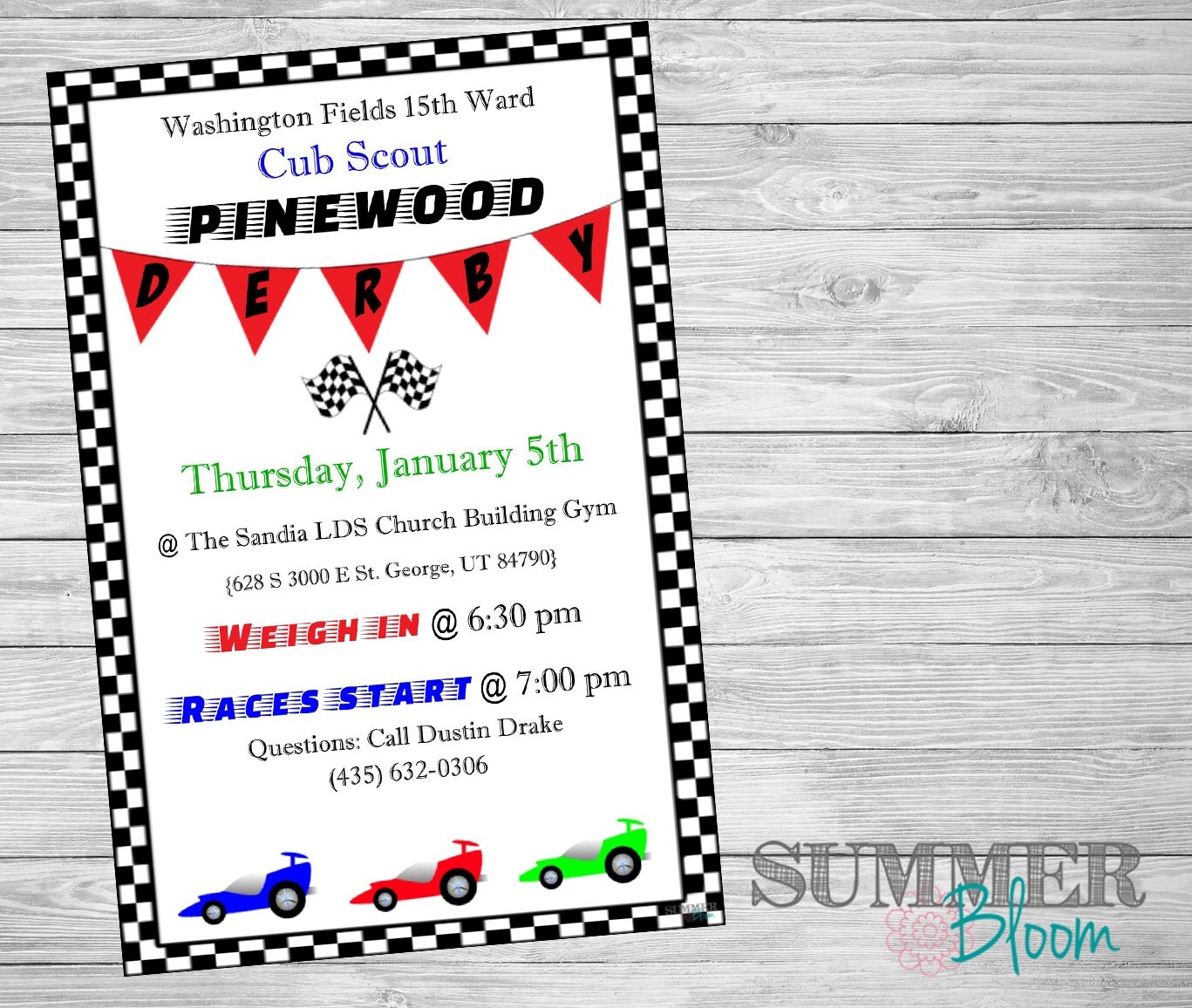 Pinewood Race Flyer Derby Invitations Printable Editable Download Etsy