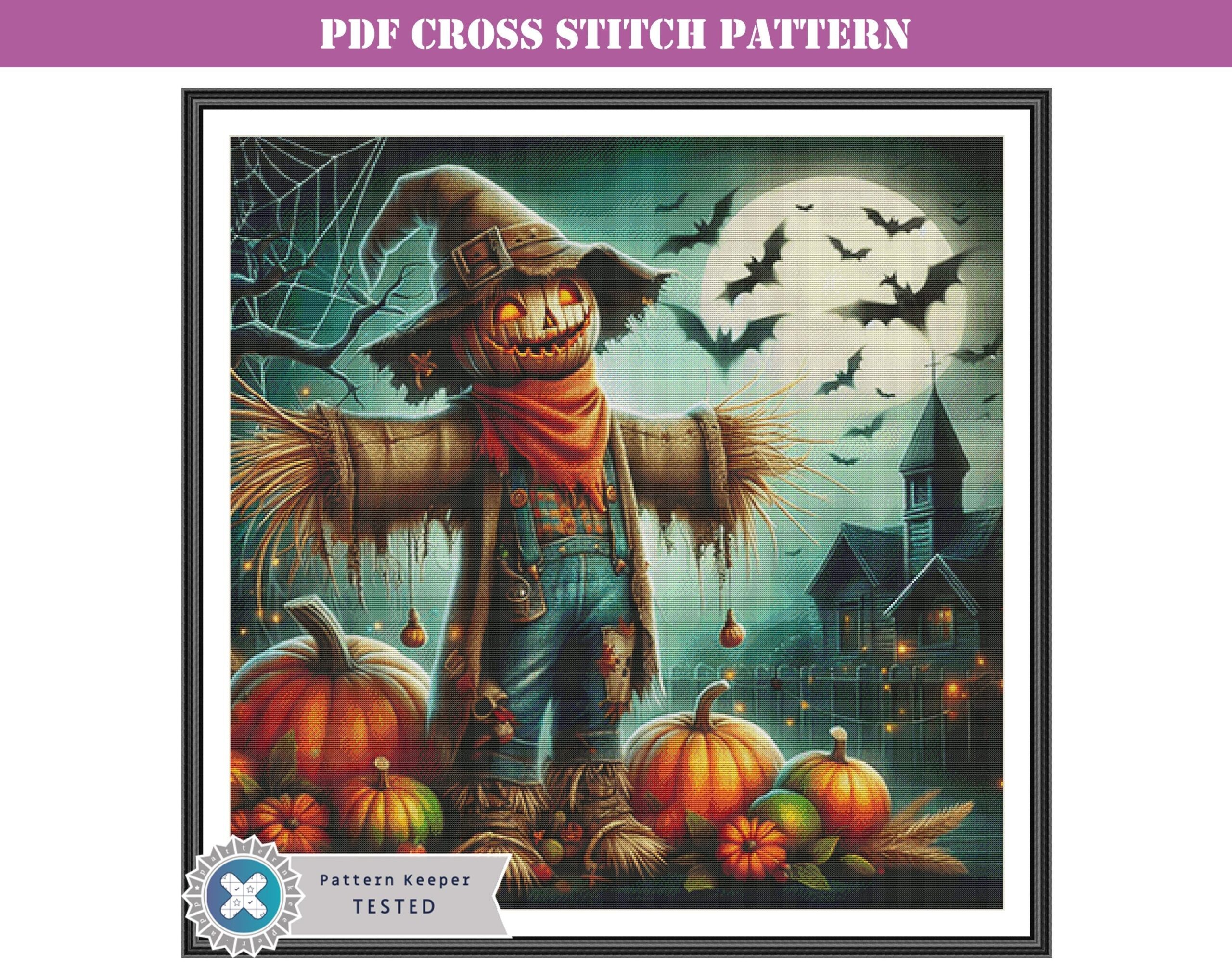 Spooky Halloween Scarecrow Counted Cross Stitch Pattern Full Coverage Design Printable PDF Chart Pattern Keeper App Compatible Etsy Australia